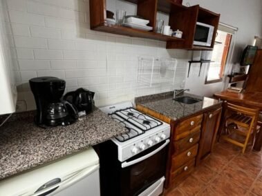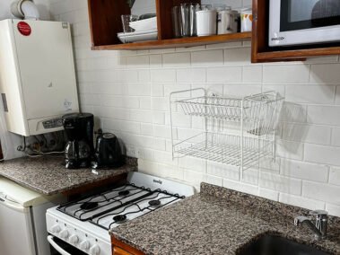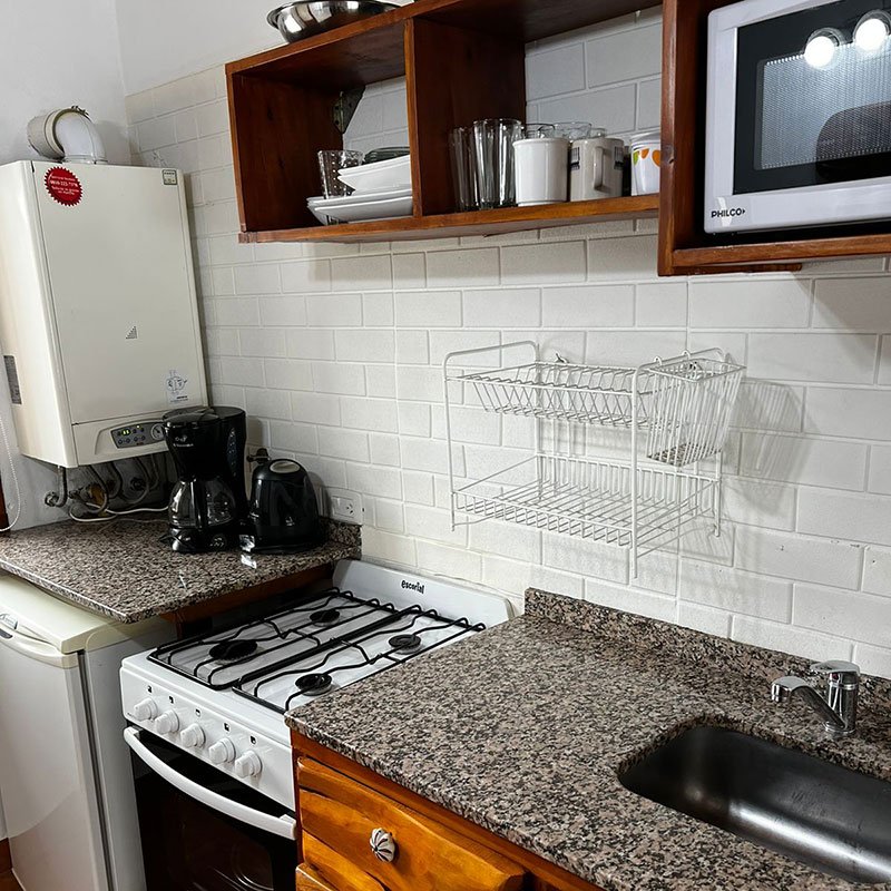 El departamento cuenta con una cama matrimonial (en el altillo), y dos camas en sector living. Wifi, TV con Direct-tv, cocina equipada con microondas, cafetera, tostadora y heladera. El baño cuenta con bañera y bidet. Se proporciona ropa de cama. La calefacción es por radiadores.